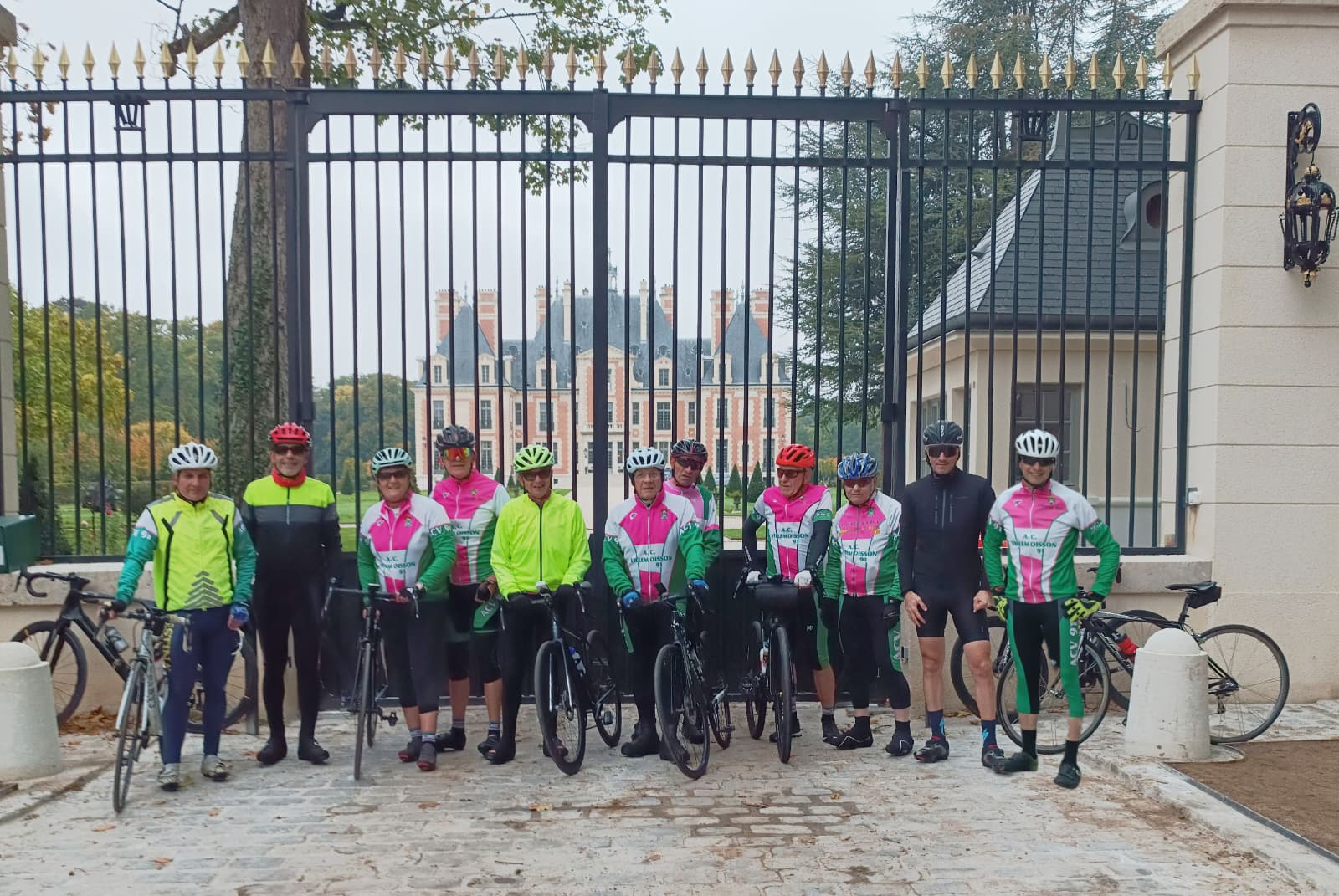 Nous étions 7 du club ce dimanche 7 octobre. Il a fallu éviter la cru de l’Orge et quelques grosses flaques. Tout s’est bien passé. La photo est prise devant la grille du Château de Saint-Vrain